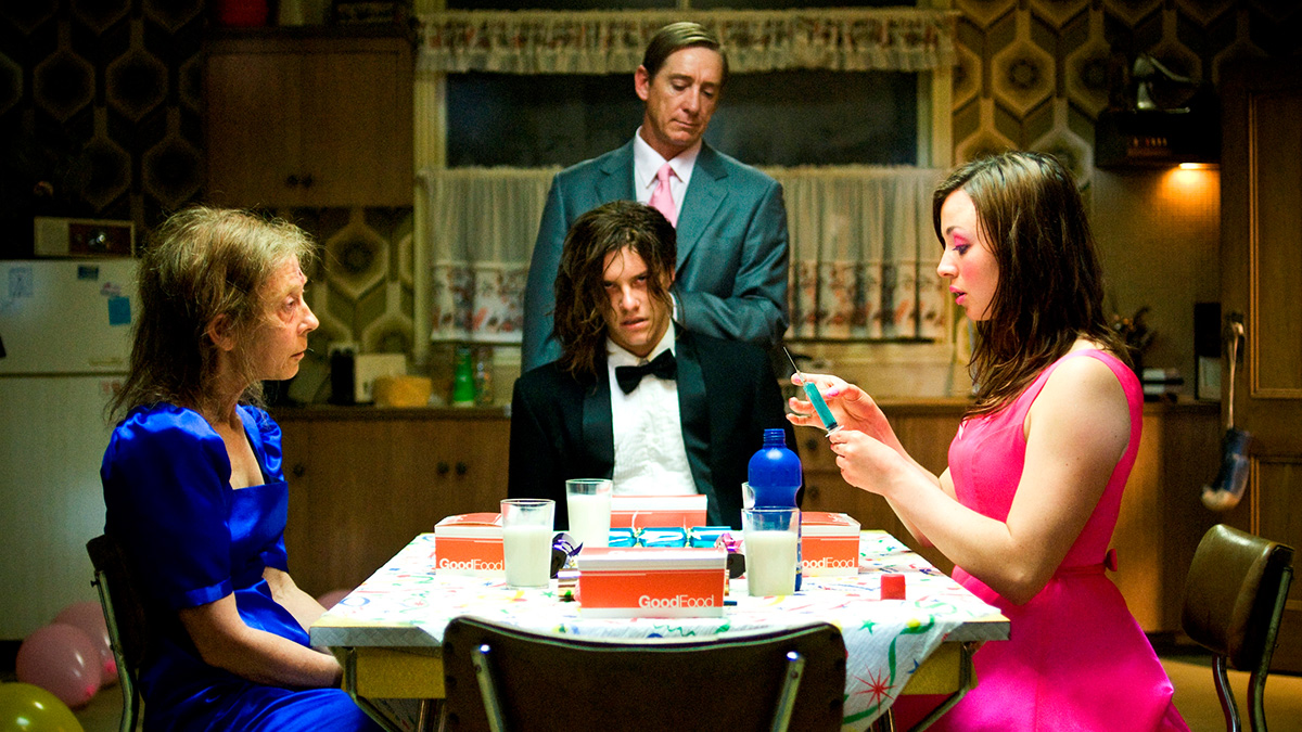 In order to avoid a ghostly figure in the road, high-school senior Brent Mitchell (Xavier Samuel) wraps his car around a tree, killing his father. Constantly confronted by his mother’s emotional collapse after the accident, Brent escapes into a marijuana-fuelled world of loud metal music to block the pain and guilt. Dejected and out of sorts, he has a shot at happiness with his girlfriend Holly, a grounded, caring girl with drop-dead good looks – a dream date for the high-school prom. But his plans are thwarted by a disturbing series of events that take place under a mirrored disco ball, involving pink satin, glitter, syringes, nails, power drills and a secret admirer. Brent has become the prom king at a macabre, sadistic event where he is the entertainment.